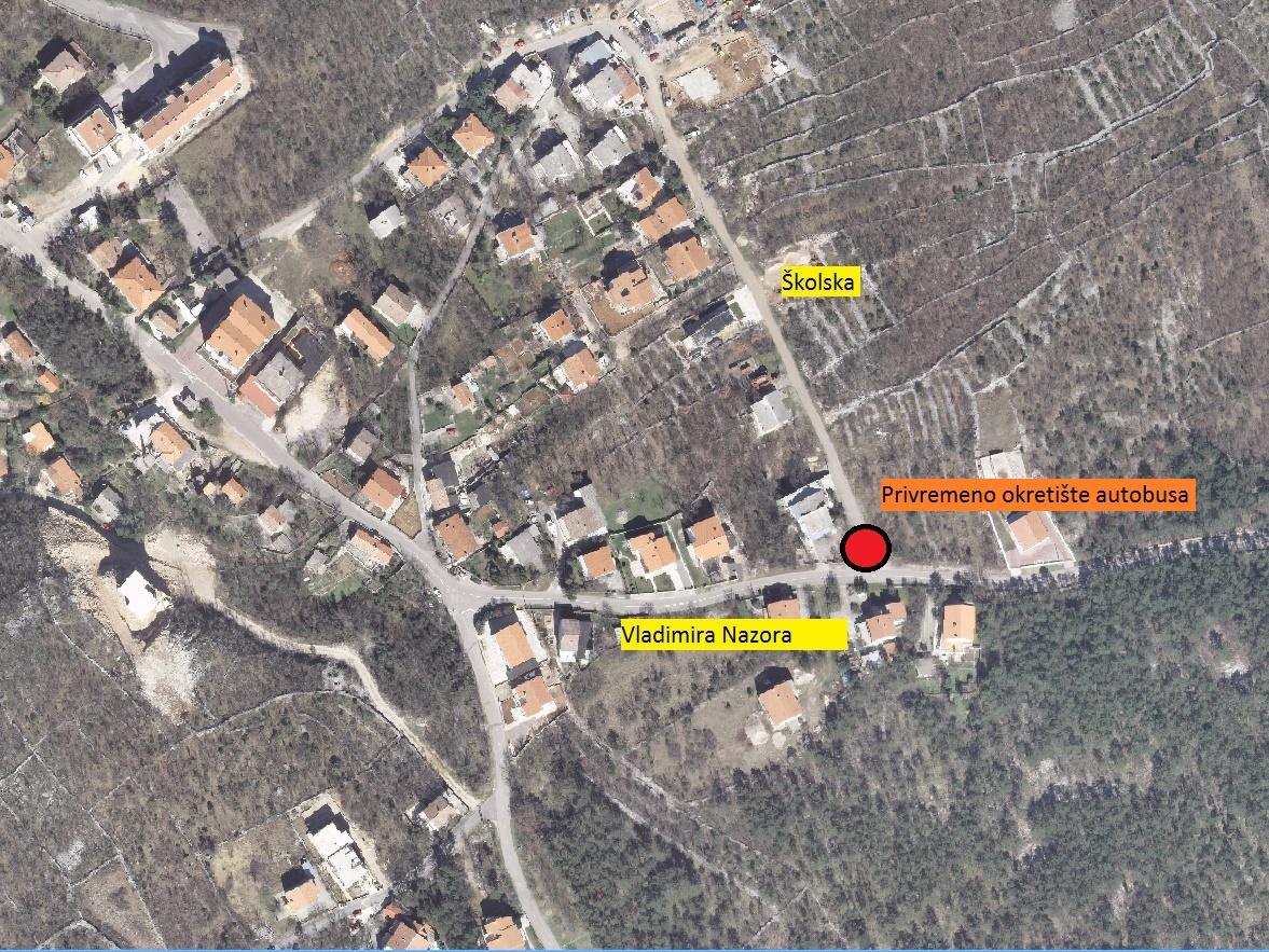 Zbog radova na izgradnji infrastrukture u Jadranovu, u ulici Vladimira Nazora, autobusno okretište City Busa, do sada locirano ispred osnovne škole, privremeno se premješta.