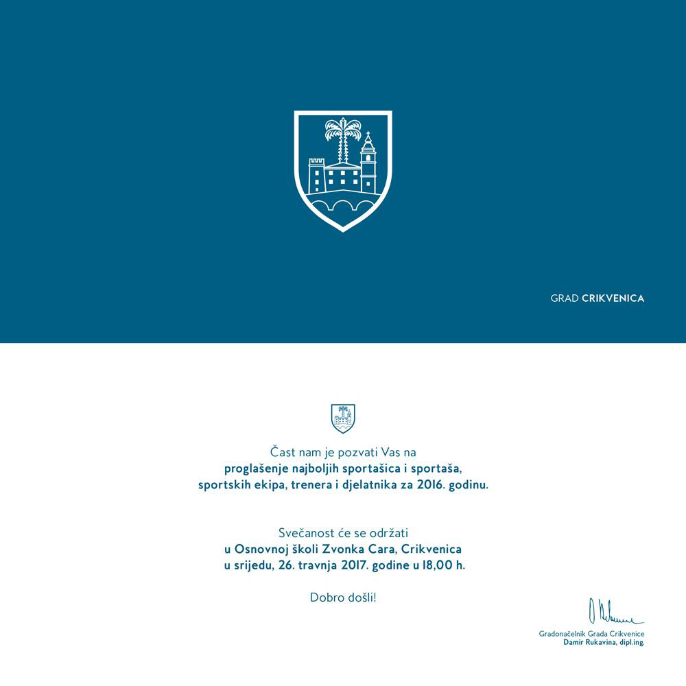 Pozivamo Vas da nam se sutra, 26. travnja u 18:00 sati pridružite u Osnovnoj školi Zvonka Cara u Crikvenici na proglašenju najboljih sportašica i sportaša, sportskih ekipa, trenera i djelatnika za 2016. godinu.