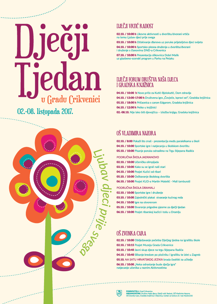 Od 02. do 10. listopada u Crikvenici se održava Dječji tjedan čiji ovogodišnji moto glasi "Ljubav djeci prije sve".
