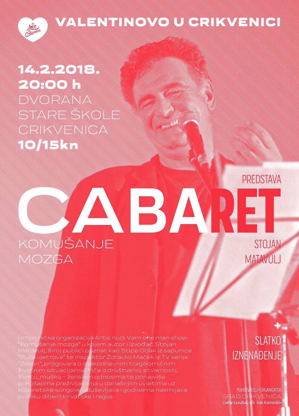 Urnebesna komedija glumca Stojana Matavulja očekuje Vas za Valentinovo u dvorani Stare škole u Crikvenici.