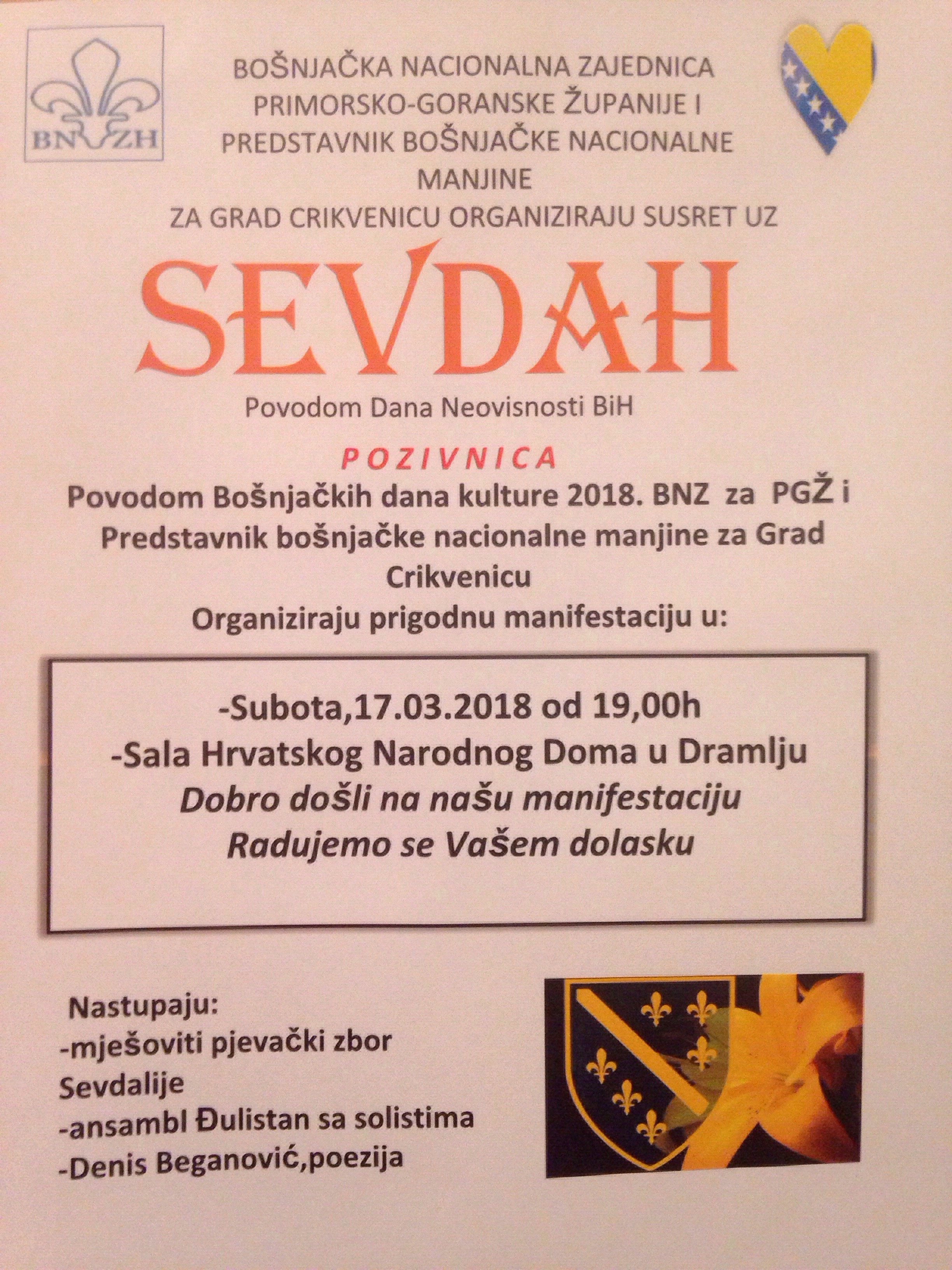 Čast nam je i zadovoljstvo pozvati Vas na manifestaciju "BOŠNJAČKA VEČER KULTURE 2018" koju već po četvrti put organiziramo u našem gradu.