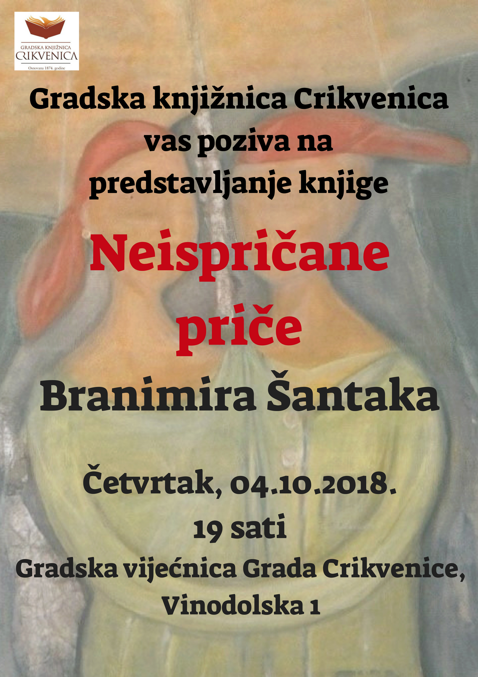 Gradska knjižnica Crikvenica Vas poziva u četvrtak, 4. 10. u 19 sati u Gradsku vijećnicu Grada Crikvenice na predstavljanje knjige Neispričane autora Branimira Šantaka.