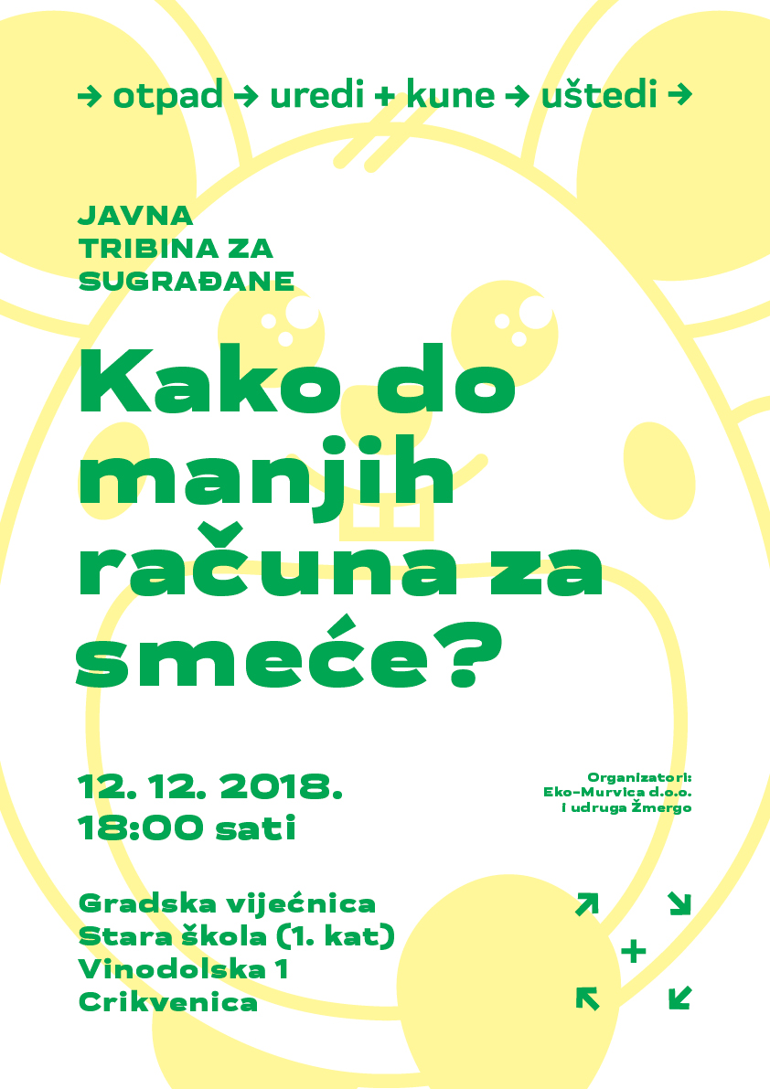 Direktor crikveničkog komunalnog poduzeća Eko-Murvica d. o. o. Lovorko Gržac najavio je javnu tribinu za naše sugrađane na svima zanimljivu temu: Kako do manjih računa za smeće? Javna tribina će se održati u srijedu, 12. 12. 2018. g. u 18:00 sati u novoj Gradskoj vijećnici (zgrada „Stare škole“, 1. kat) na adresi Vinodolska 1, Crikvenica. Građani će imati priliku iz prve ruke čuti korisne savjete o tome kako uštedjeti na računima za odvoz otpada i pitati sve što ih zanima. Očekujemo vrlo zanimljivu raspravu na ovu temu te ovim putem pozivamo sve zainteresirane sugrađane i goste da dođu i aktivno sudjeluju na tribini svojim pitanjima i komentarima!